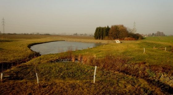 Vodná nádrž s poldrom a biocentrom v okrese Kroměříž.